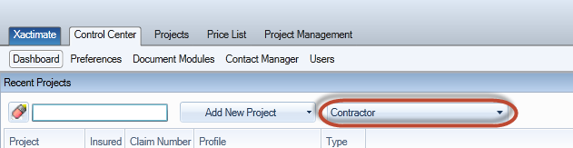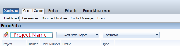 project name or a portion of the project name in the Recent Projects